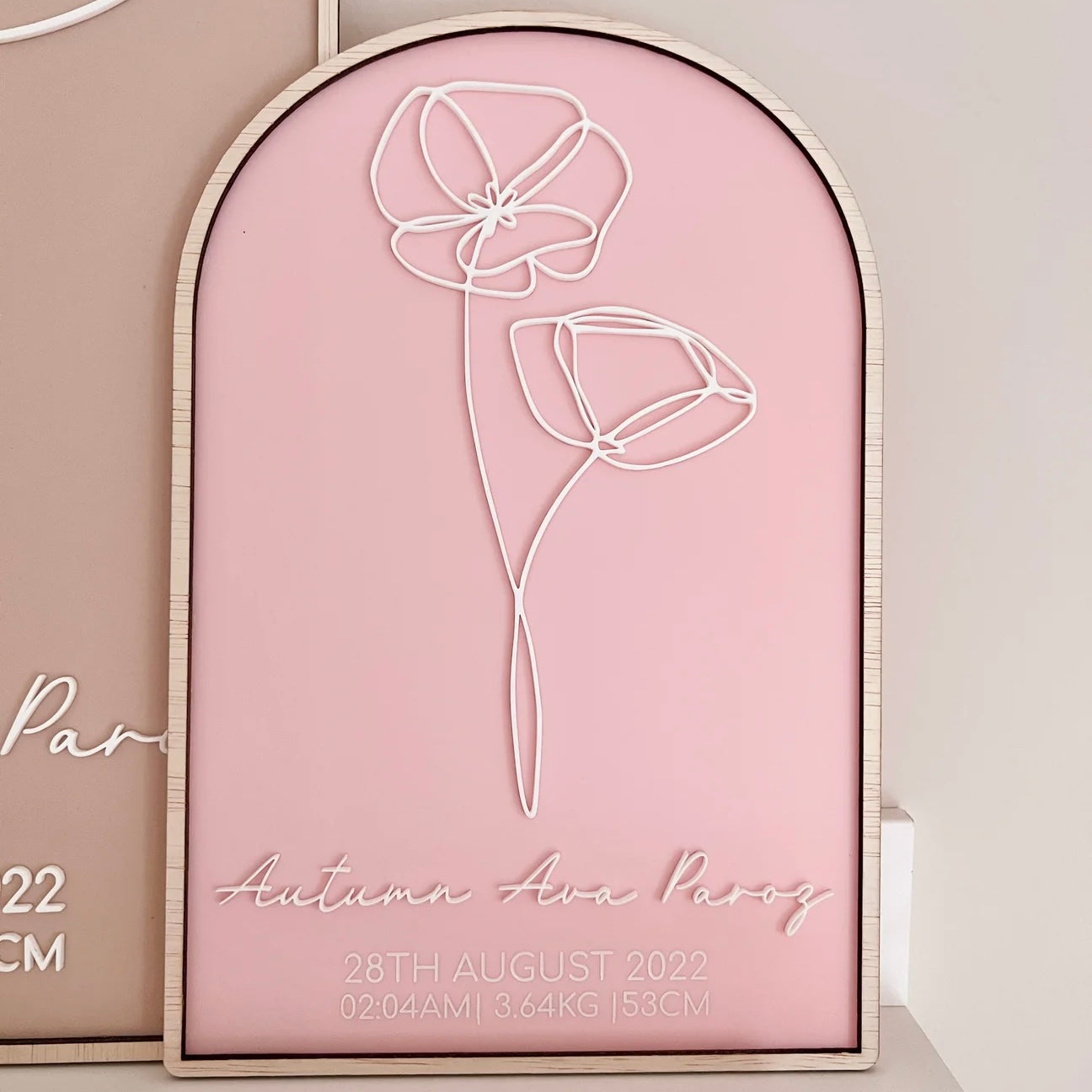 Personalised mini sized Birth Month Flower plaque with birth details, from our Floral Collection. Customise your plaque in fonts and colours of your choice, to make it truly unique. 29cm x 19.5cm