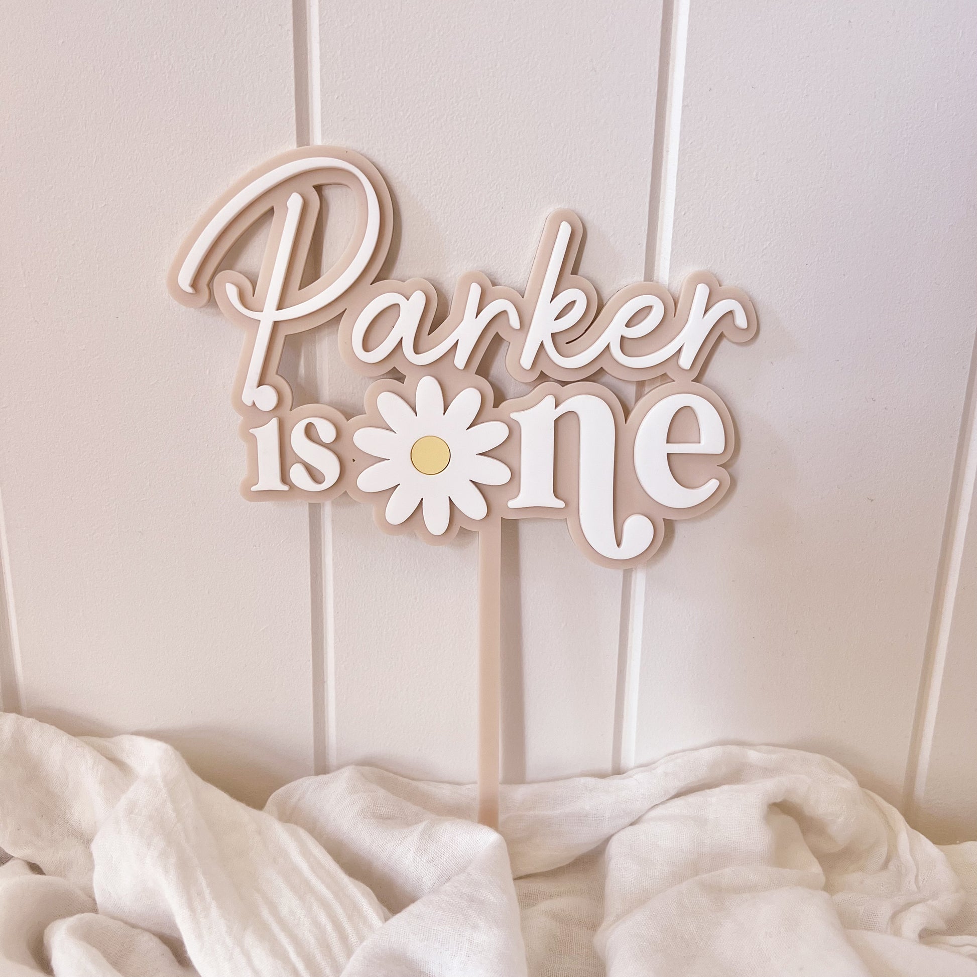 Personalised Cake Topper with a daisy design, from our Floral Collection, perfect for a first birthday. Colours are customisable, for a truly unique piece to match the big day. 17cm x 23cm