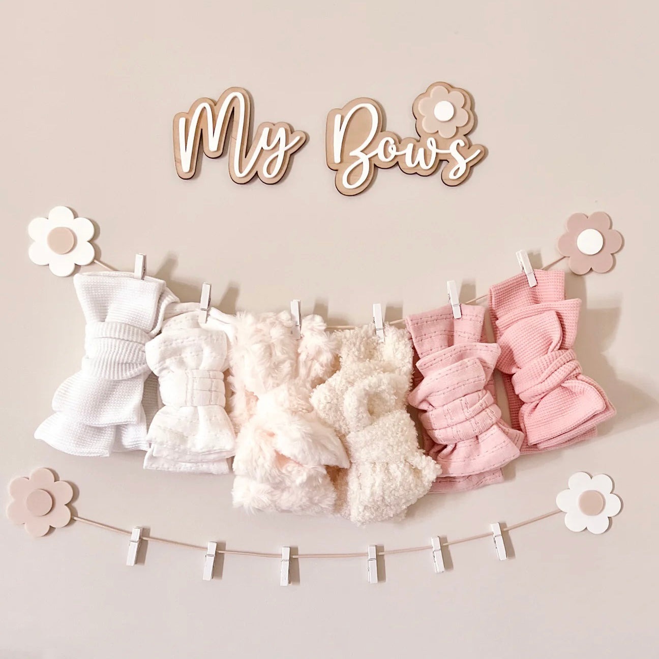 Extra Lengths for our bow holder are available to be purchased for those with larger bow collections and come with your choice of Acrylic butterflies or Daisies.